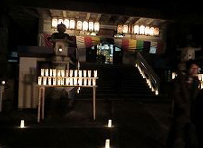 一合酒カップに和紙を巻いた中にろうそくを入れたライト・アップで境内は幻想的な雰囲気になります。